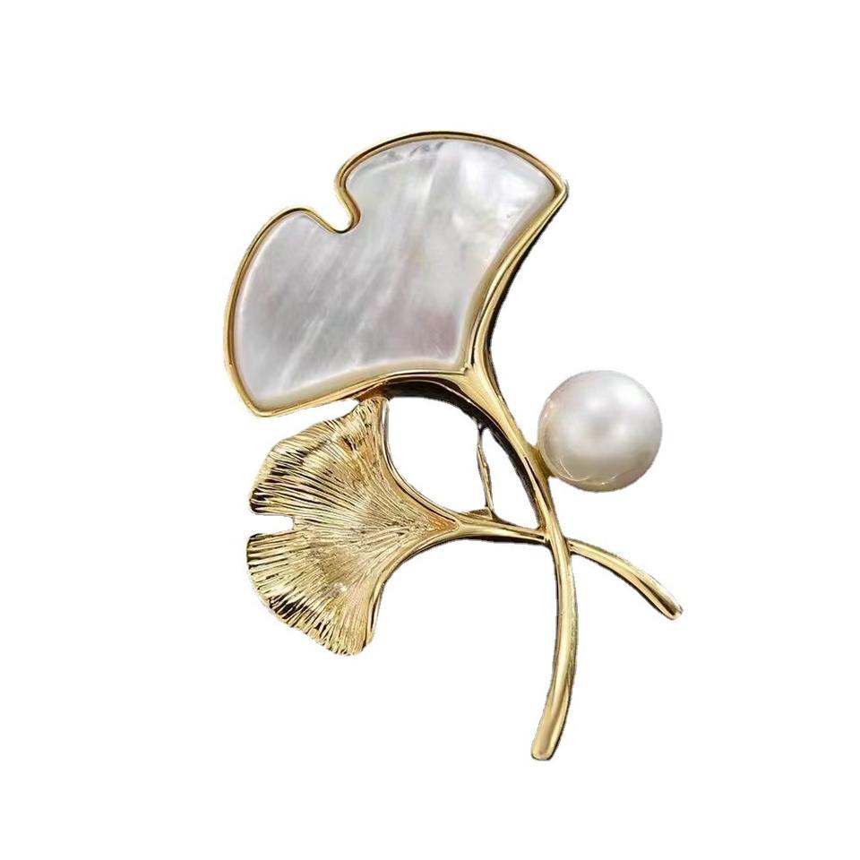 เข็มกลัดเปลือกหอยมุกธรรมชาติ Wenchi Double Eleven ขนาด 8 มม. ประดับมุกอะโกยะน้ำจืด ดีไซน์ใบแปะก๊วยเต็มใบ สำหรับตกแต่งเสื้อผ้าช่วงฤดูใบไม้ร่วง