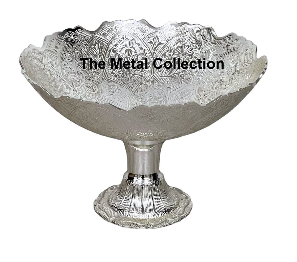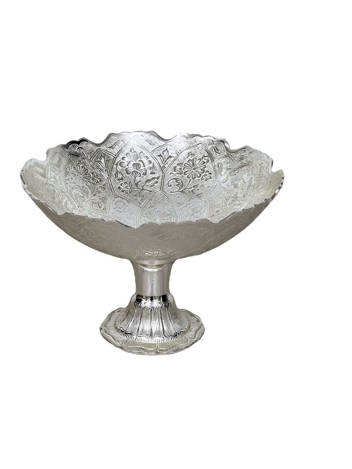 ชามเสิร์ฟพร้อมลายนูนสองชั้นสำหรับเครื่องครัวโรงแรมร้านอาหารผลไม้ชามเสิร์ฟทองเหลืองทรงกลมสีเงิน