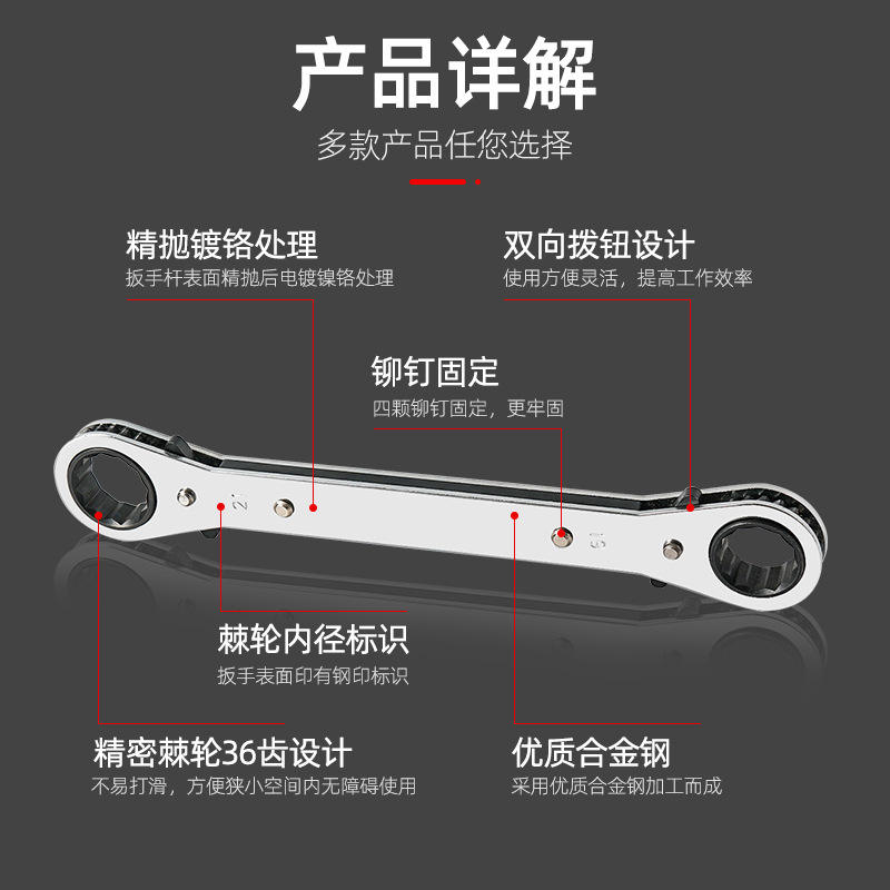ประแจวงล้อปลายคู่ตัวชี้วัดโลหะผสมเหล็กกรามหยักเครื่องมือซ่อมรถยนต์เกรดอุตสาหกรรม