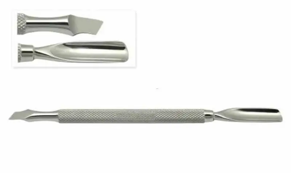 ที่ดันและทำความสะอาดหนังกำพร้าเล็บสแตนเลสแบบปลายสองด้าน เงาเหมือนกระจก คุณภาพดี น้ำหนักเบา ใช้ซ้ำได้ มีตัวเลือกสกรีนโลโก้
