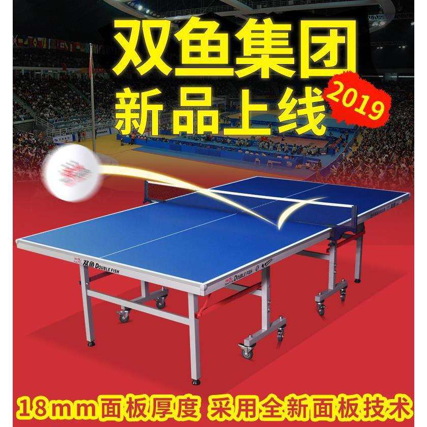 โต๊ะปิงปอง Double Fish ขนาด 274x152.5x76 ซม. พับได้ สำหรับใช้ในบ้าน พร้อมตาข่ายและล้อเลื่อน