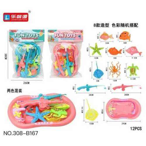 ของเล่นสนุกๆ ชุดคันเบ็ดตกปลา สีผสม ของเล่นอาบน้ำสำหรับเด็ก 2-4 ปี พลาสติกสไตล์การ์ตูน ของเล่นแบบกังหันน้ำ