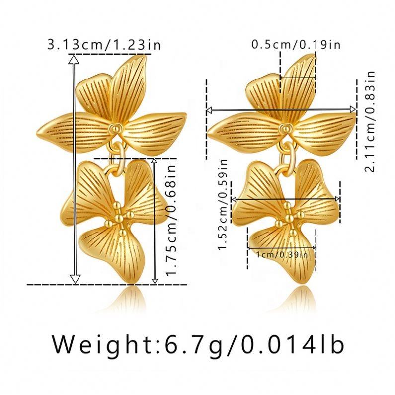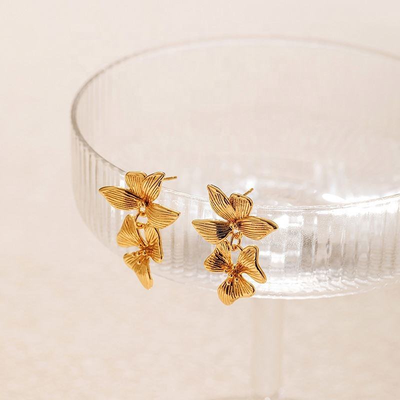 ต่างหูรูปดอกไม้คู่แบบปรับแต่งได้ ชุบทอง 14K สแตนเลสสตีล พร้อมดีไซน์สั่งทำพิเศษ เครื่องประดับสำหรับงานปาร์ตี้สุดอินเทรนด์