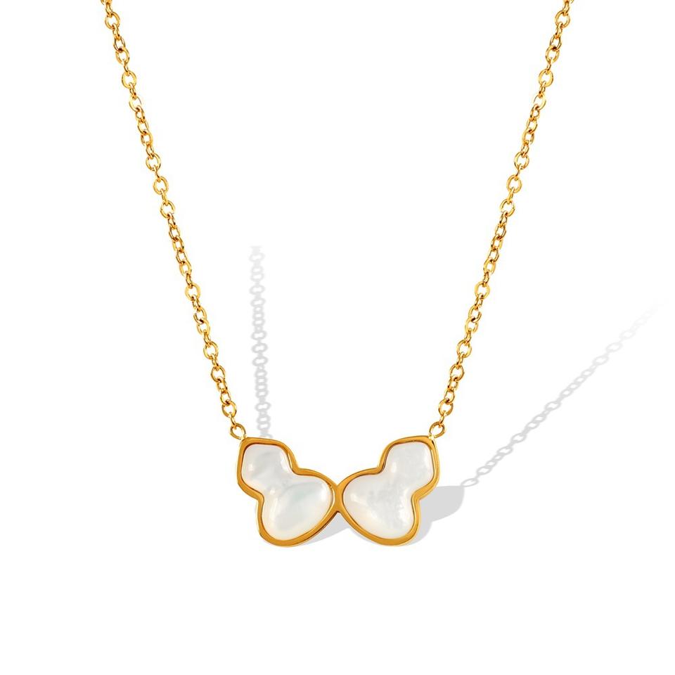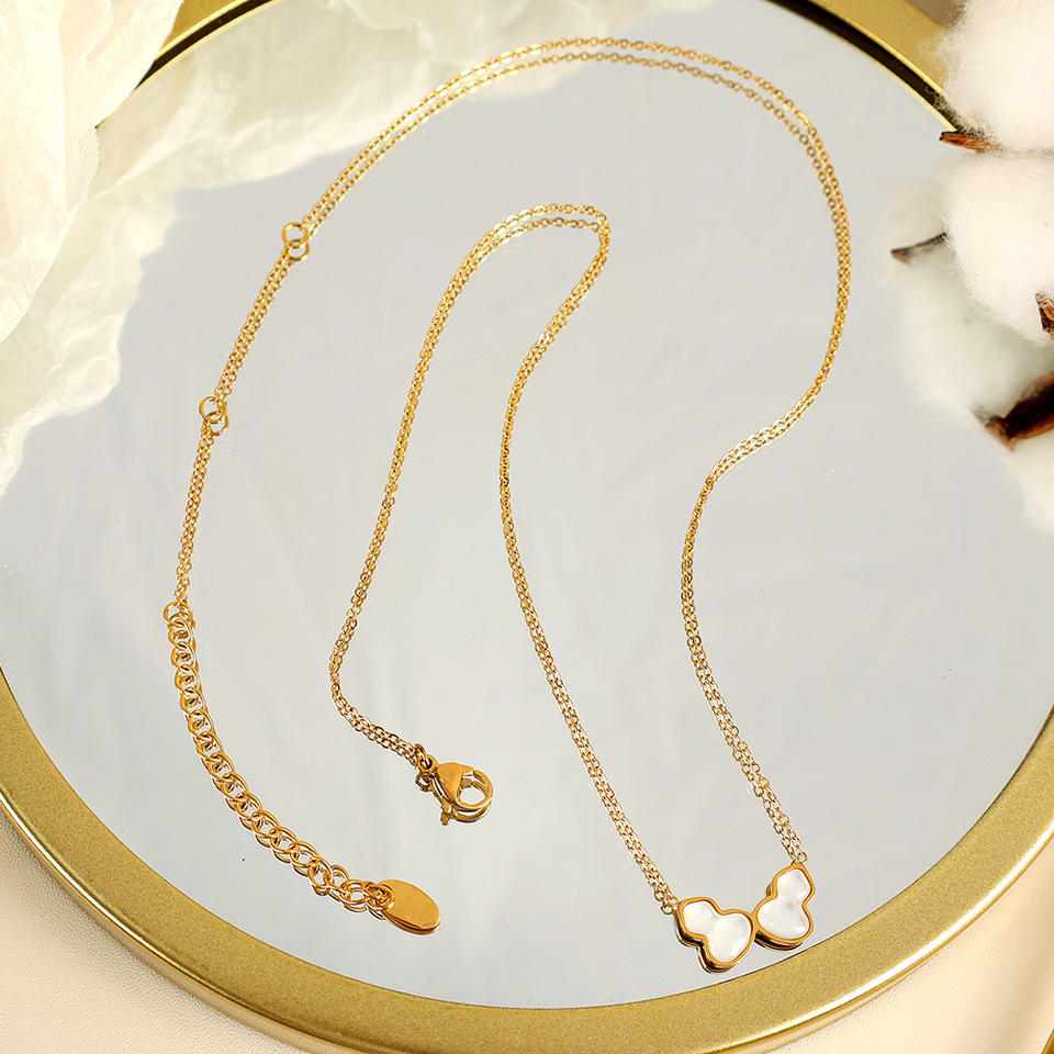 สร้อยคอรูปน้ำเต้าคู่ ชุบทอง 18k จี้ไทเทเนียมสตีล ประดับเปลือกหอย สายคล้องไหปลาร้า สำหรับผู้หญิง สวมใส่ได้ทุกวัน