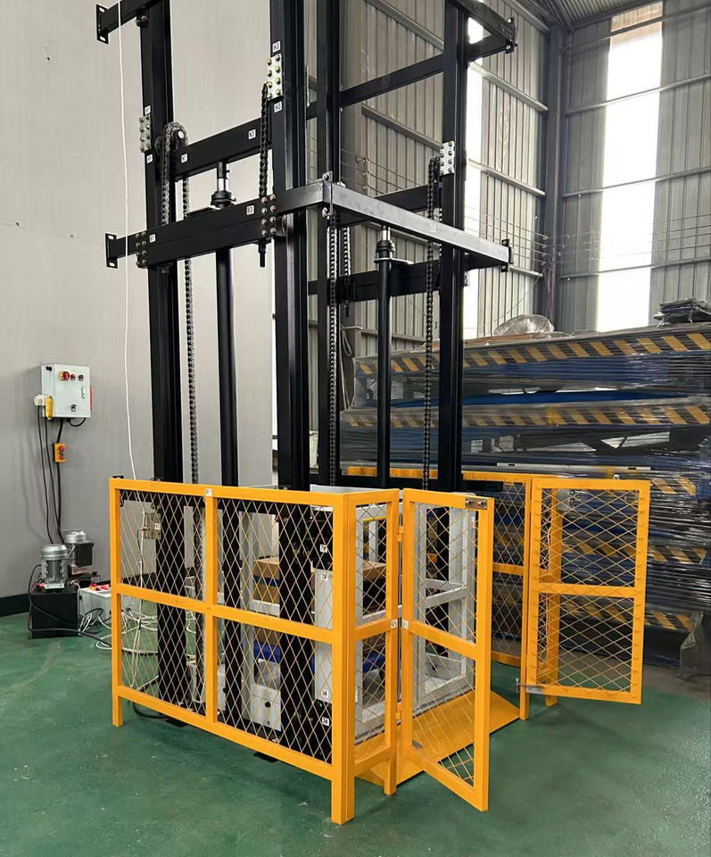 ลิฟท์ยกโกดังสินค้าเหล็กไฮดรอลิกรางคู่แบบพกพาสำหรับอุตสาหกรรมสภาพใหม่ความจุ1ตัน1ปี