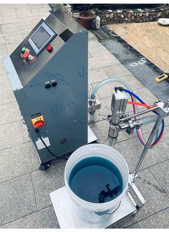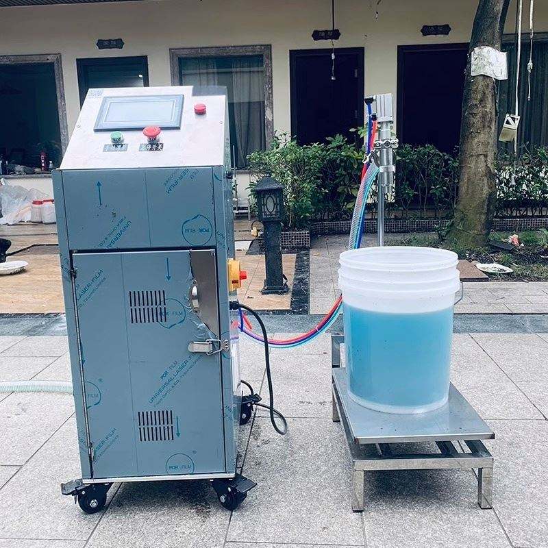เครื่องบรรจุแบบกึ่งอัตโนมัติแบบหัวคู่ ขนาด 30 ลิตร 80 ลิตร 160 ลิตร สำหรับบรรจุน้ำบริสุทธิ์ ซอสมะเขือเทศ น้ำยาทำความสะอาดห้องน้ำ น้ำยาซักผ้า น้ำมัน และบรรจุภัณฑ์แบบถุง