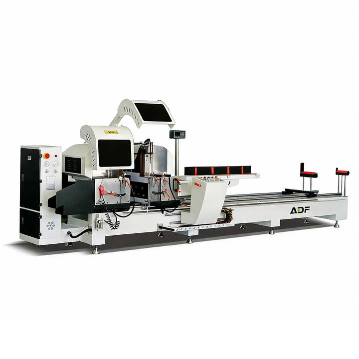 เครื่องเลื่อยตัดความแม่นยำสูงแบบสองหัว CNC/จอแสดงผลดิจิตอล สำหรับการแปรรูปประตูและหน้าต่างระบบอลูมิเนียมกันความร้อน