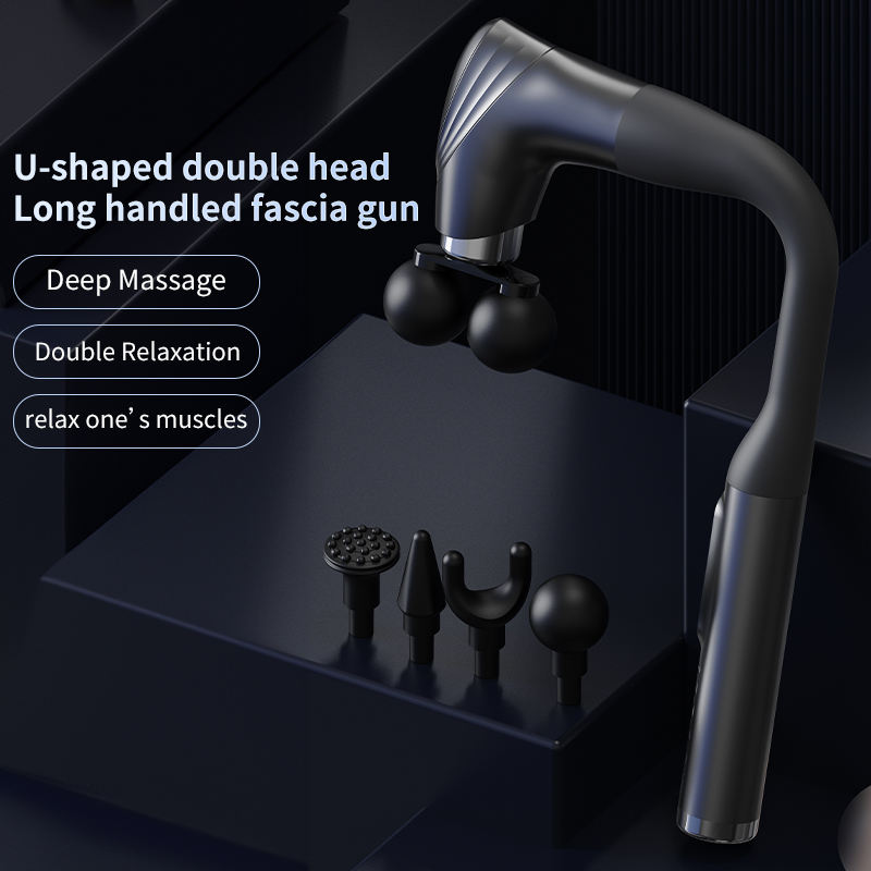 ปืนนวดแบบสองหัวด้ามยาว พร้อมระบบตั้งเวลา กระตุ้นกล้ามเนื้อทั่วร่างกาย ผ่อนคลายด้วยการสั่นสะเทือน แบรนด์ OEM รับประกัน 1 ปี
