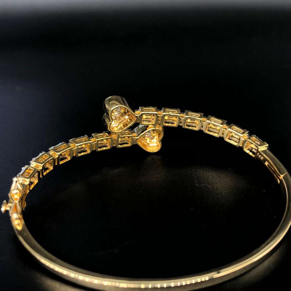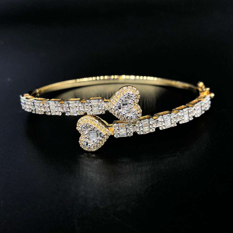 สร้อยข้อมือเพชรและกำไลข้อมือสีโรสโกลด์14K อันหรูหรามีลายเทนนิสหัวใจคู่ดีไซน์1.68