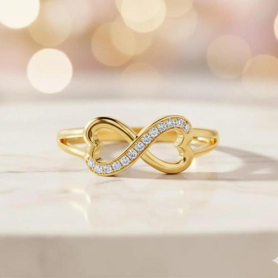 แหวนทอง 14K รูปหัวใจคู่ สัญลักษณ์อินฟินิตี้ วงแหวนแห่งนิรันดร์