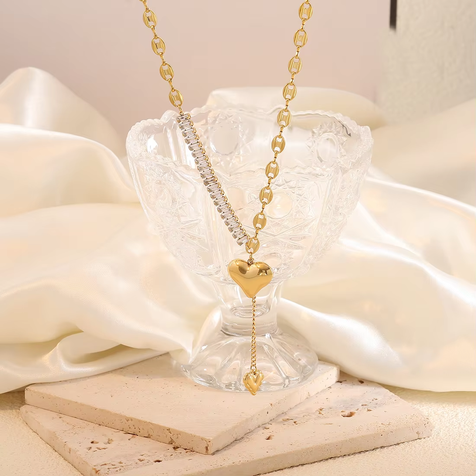 สร้อยคอพร้อมจี้รูปจมูกหมูหัวใจคู่แบบวินเทจ