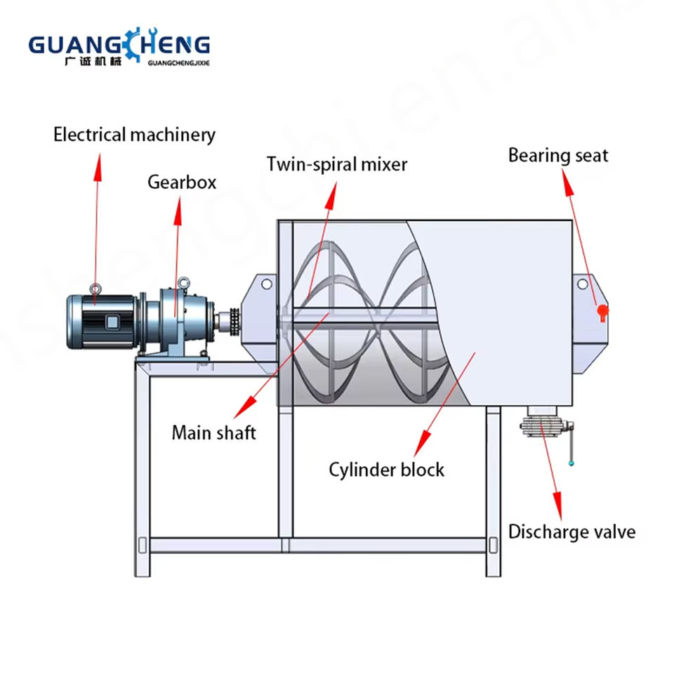 Double Helix Ribbon Mixer Industrial Steel Automatic Food Grade 200-5000 kg Horizontal Mixing Machine Detergent Powders Motor