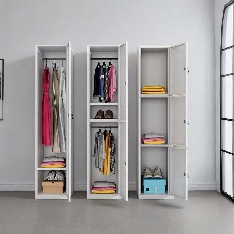 ตู้เหล็กสองชั้น ประตูเดียว ตู้เก็บของเหล็ก สำหรับโรงเรียน/หอพัก ตู้เก็บของในบ้าน ตู้เสื้อผ้าช่องแคบ ชั้นวางรองเท้า