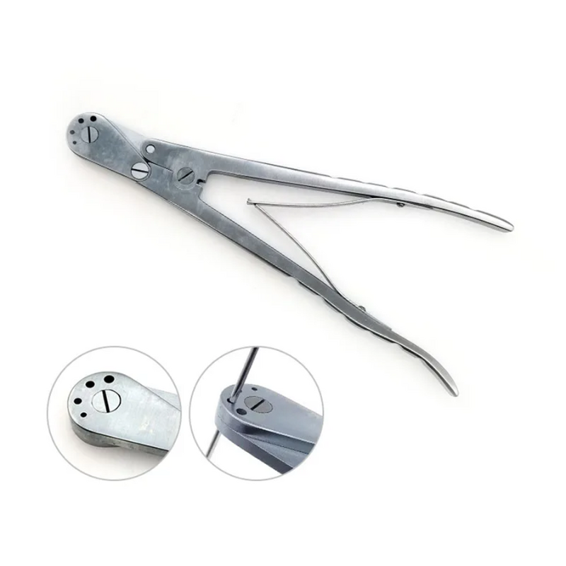 เครื่องตัดลวดคิร์ชเนอร์แบบสองข้อต่อ พร้อมกรรไกรตัดกระดูกเหล็กคม สำหรับศัลยกรรมกระดูก โดย Surgiright