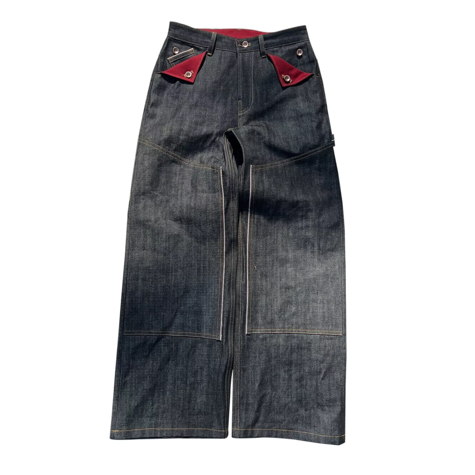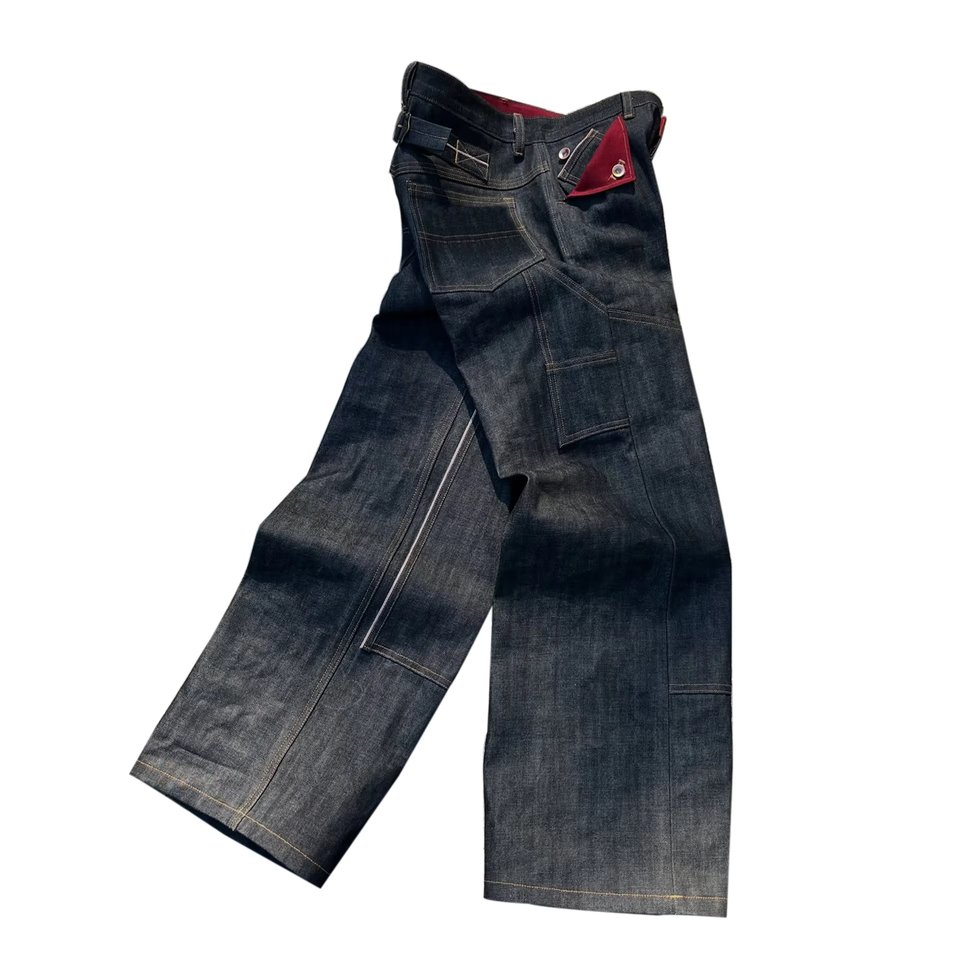 Double Knee Carpenter Workwear Denim Jeans 15oz Wide Leg Men's Denim Pants Canvas Mule Pocket Unwashed Raw Selvedge Baggy Jeans
