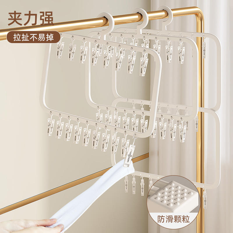 Double Layer 18 Clip Sock Drying Rack Rectangle Hook Type Clothing Organizer For Balcony Windproof Use