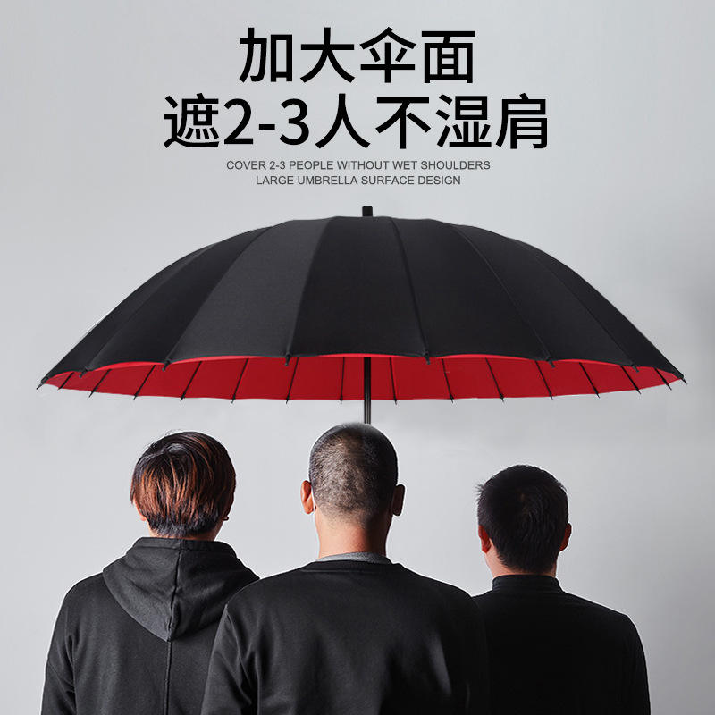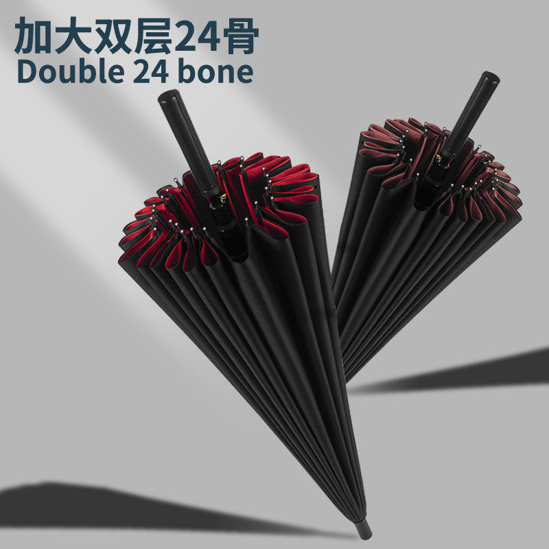 ร่มกอล์ฟอัตโนมัติ 2 ชั้น 24 ซี่โครง ขนาดใหญ่พิเศษ สีดำ ด้ามยาว ตรง สำหรับผู้ชาย ใช้สำหรับเดินทาง