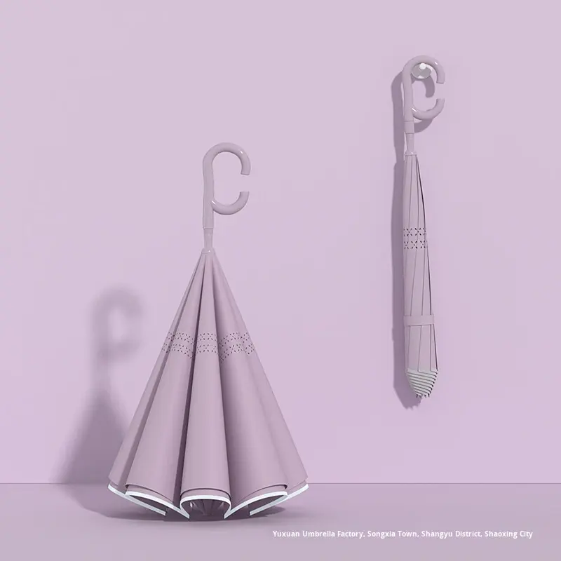 Double Layer Color Matching Reverse Automatic&Manual Car Umbrella with Long Handle Wind & Rain Resistant for Women & Men