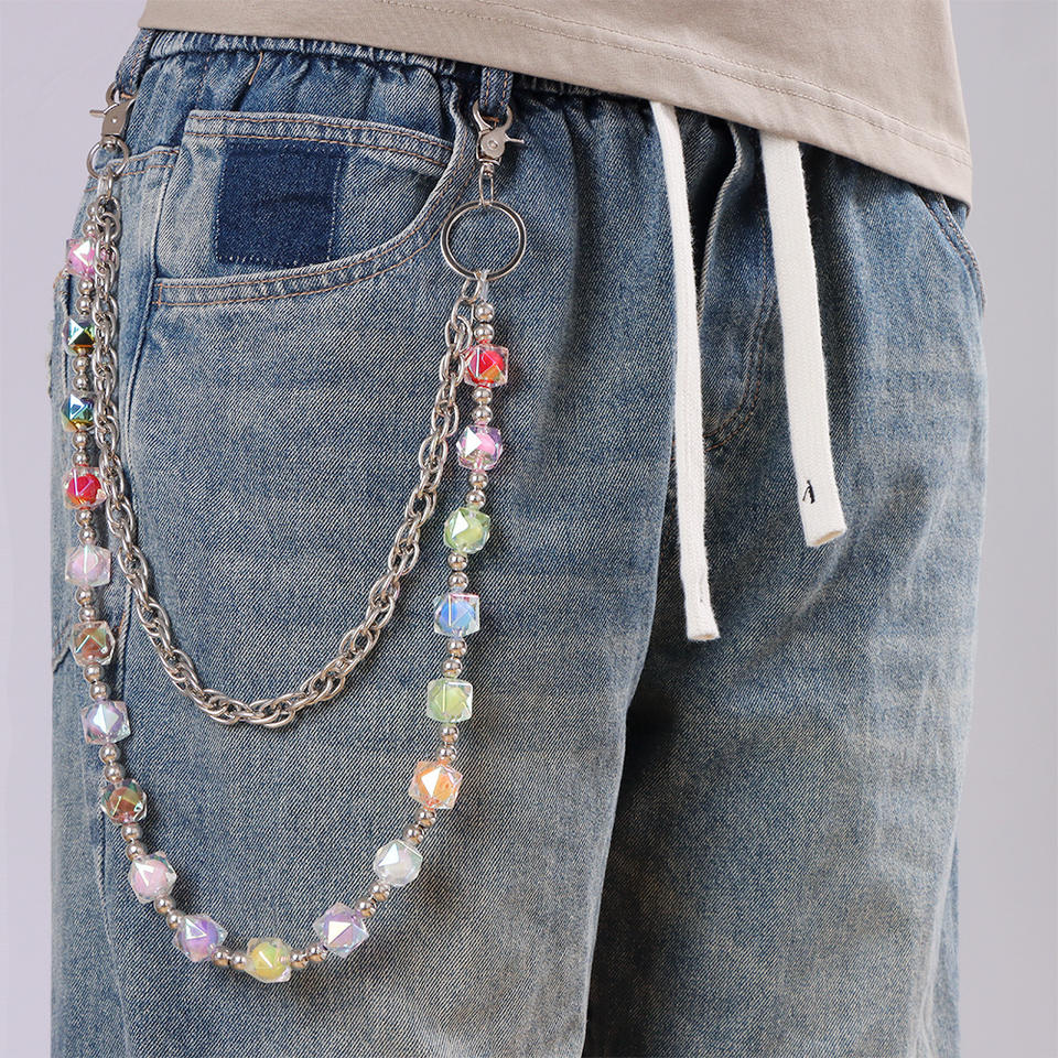 Double Layer Colorful Beaded Waist Chain Zinc Alloy Geometric Daily Wear Hip Hop Jeans Chain