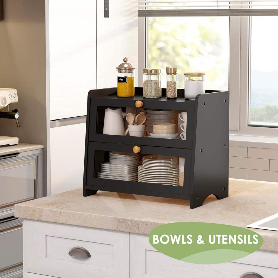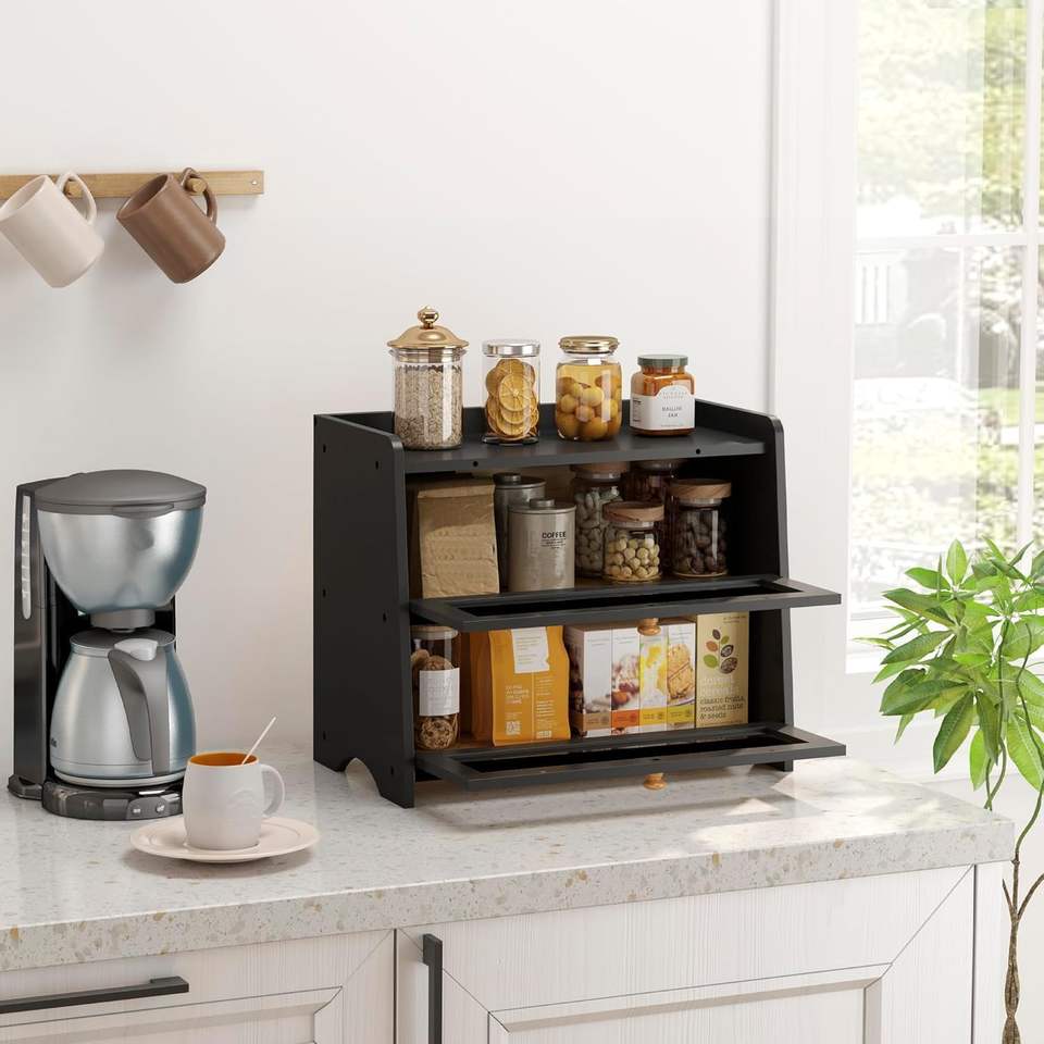 กล่องใส่เครื่องเทศไม้พับได้สองชั้น เป็นมิตรกับสิ่งแวดล้อม สำหรับจัดเก็บบนเคาน์เตอร์ครัว ดีไซน์ทันสมัยสำหรับภาชนะบรรจุอาหาร