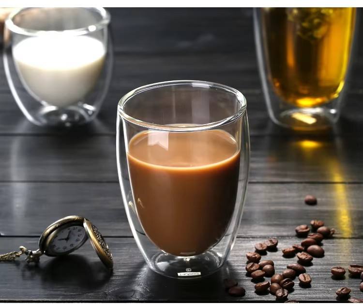แก้วกาแฟสองชั้นแบบใส ทนความร้อน พร้อมจานรอง แก้วเบียร์ แก้วกาแฟสองชั้น แก้วแก้วสองชั้นพร้อมหูจับหนา