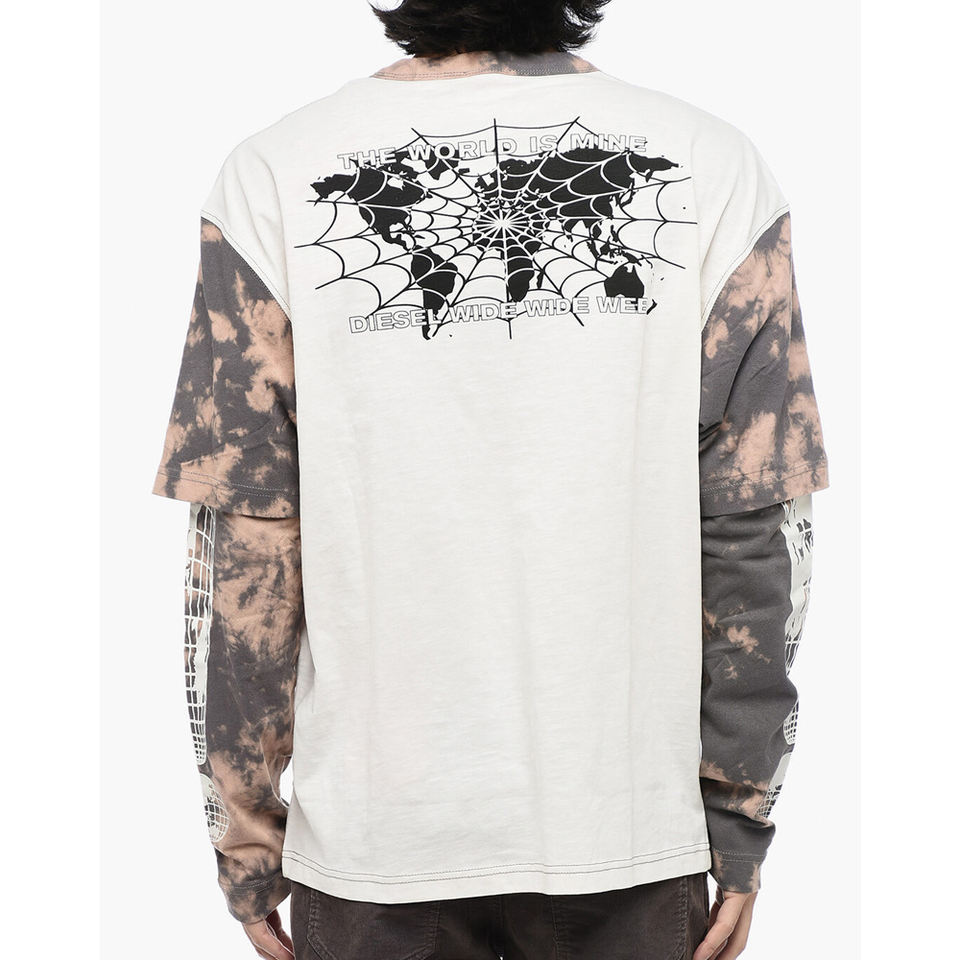 เสื้อยืดโอเวอร์ไซส์ผู้ชายแขนยาวสองชั้น พิมพ์ลายสกรีนตามสั่ง สไตล์วินเทจลายกราฟิก Old Money