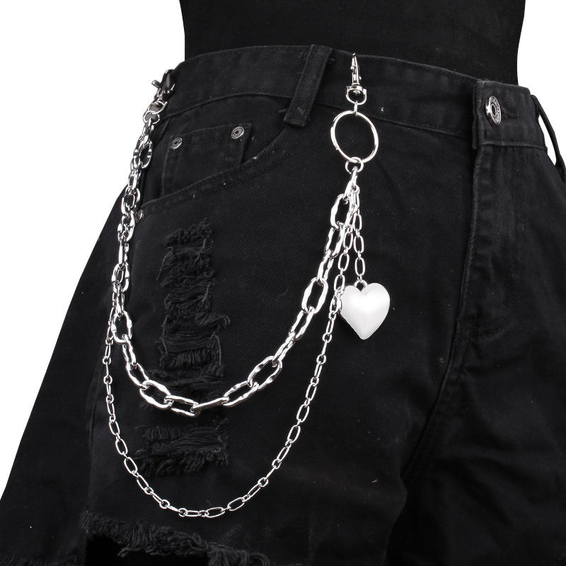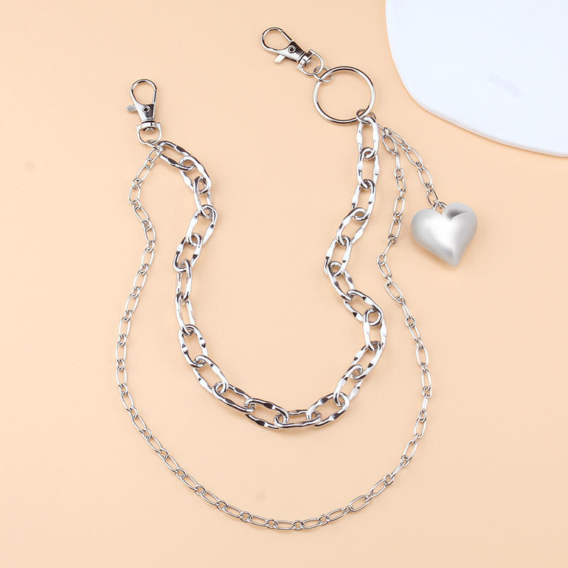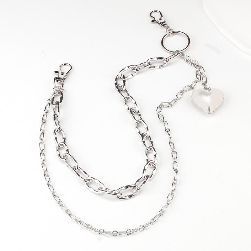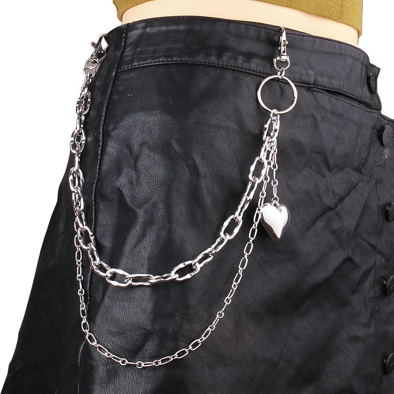 โซ่คาดเอวจี้รูปหัวใจสองชั้น สไตล์พังก์ ตกแต่งด้วยวงแหวนโลหะ โซ่คล้องกางเกง ทำจากโลหะผสมสังกะสี เหมาะสำหรับใส่ในชีวิตประจำวัน