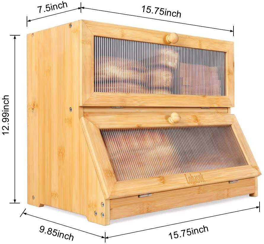 กล่องขนมปังขนาดใหญ่สองชั้นสำหรับเคาน์เตอร์ห้องครัว,ที่เก็บขนมปังไม้พร้อมหน้าต่าง,ภาชนะขนมปังไม้ไผ่ธรรมชาติเก็บขนมปัง