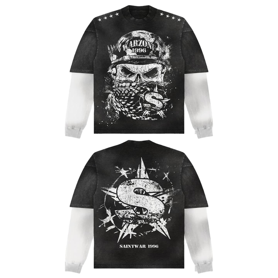 Double Layer Men's Custom High Quality 100% Cotton Regular Fit Eco-Friendly Breathable Vintage Boxy Long Sleeve T-shirt