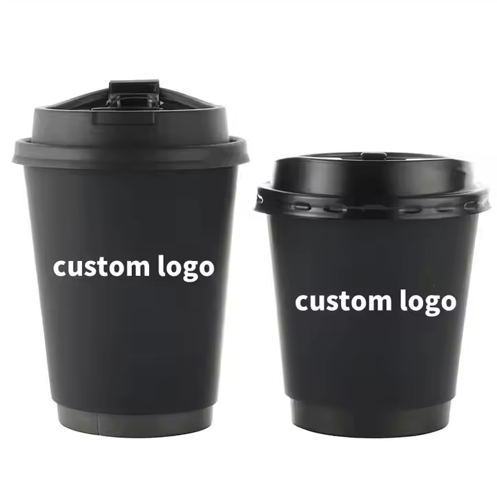ถ้วยกระดาษสองชั้นถ้วยกระดาษไอศกรีมทรงสี่เหลี่ยมพร้อมฝาแบบใช้แล้วทิ้งถ้วยกระดาษลูกฟูกสำหรับเครื่องดื่มร้อนถ้วยกระดาษแบบคู่