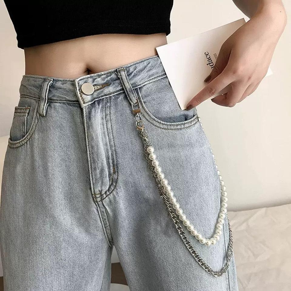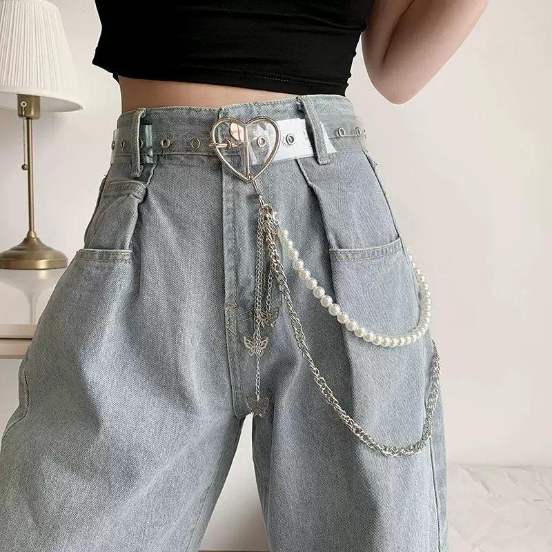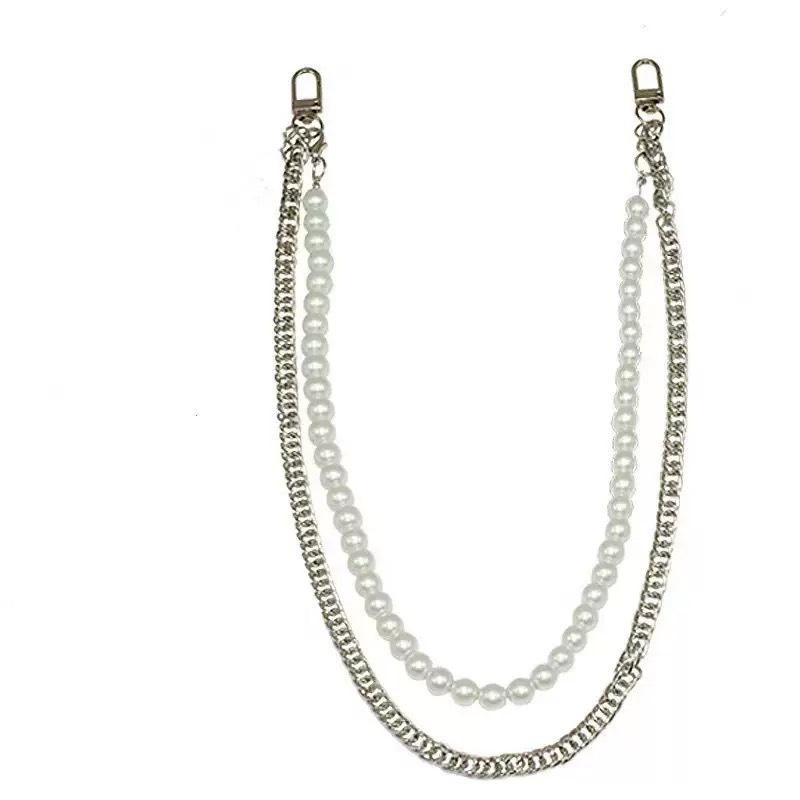 สายสร้อยเอวไข่มุกผีเสื้อสองชั้นพร้อมพู่และสายโซ่สำหรับสวมใส่ทุกวัน