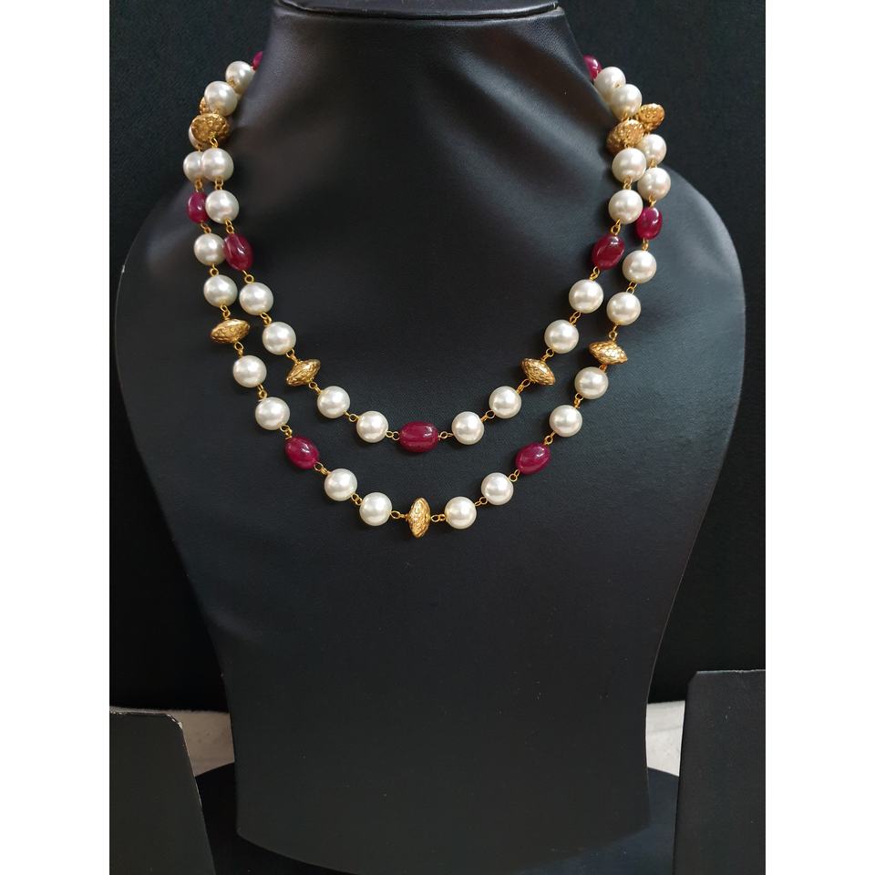 สร้อยคอลูกปัดมุกสีแดงสองชั้นเครื่องประดับอินเดียแบบดั้งเดิมชุดปาร์ตี้งานแต่งงานสร้อยคอแฟชั่นดีไซน์เนอร์สำหรับผู้หญิงเด็กผู้หญิง