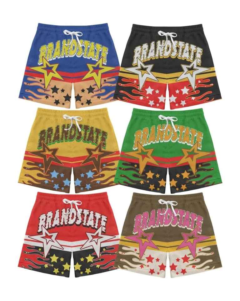 กางเกงขาสั้นตาข่ายบาสเก็ตบอลพิมพ์ซับลิเมชันเต็มที่สำหรับเล่นยิมเล่นกีฬาบาสเก็ตบอล