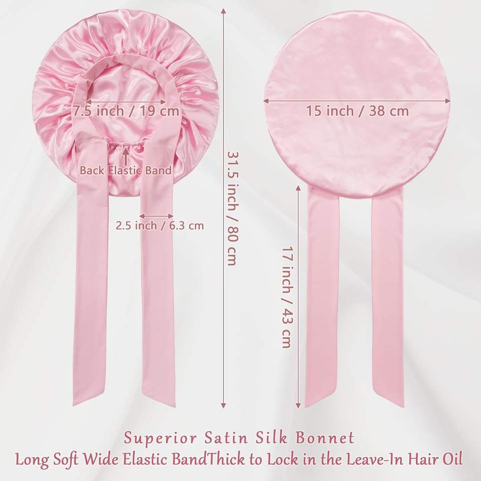 หมวกซาตินสองชั้นสำหรับผู้หญิงพร้อมสายผูก หมวกนอนปรับได้สำหรับผมหยิก ใช้ในบ้านได้ทุกฤดูกาล