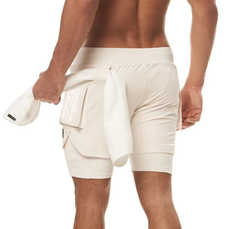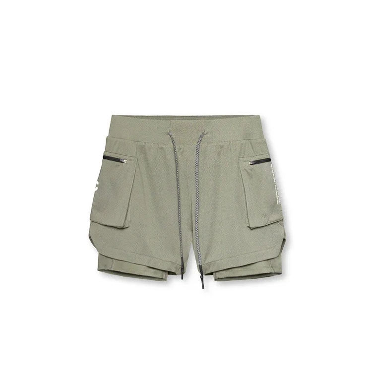 กางเกงขาสั้นออกกำลังกายสองชั้นสำหรับผู้ชาย ทรงสปอร์ต ผลิตจากโพลีเอสเตอร์และสแปนเด็กซ์ เหมาะสำหรับวิ่งและออกกำลังกาย ผลิตในประเทศปากีสถาน