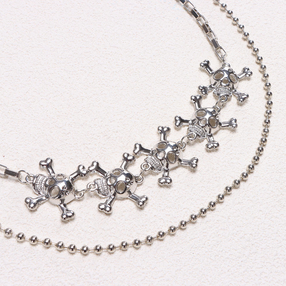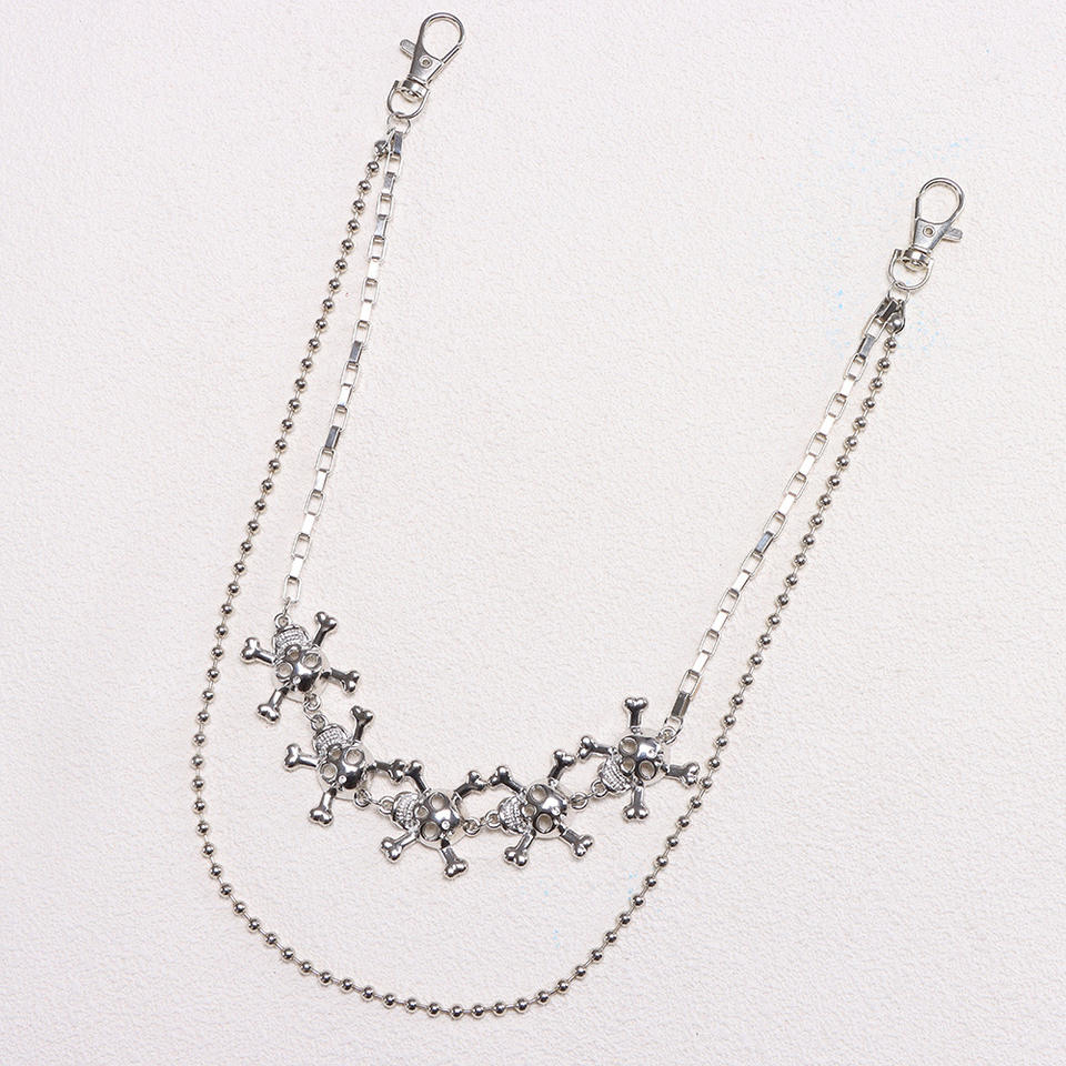 color:Double-layer skull beaded trouser chain