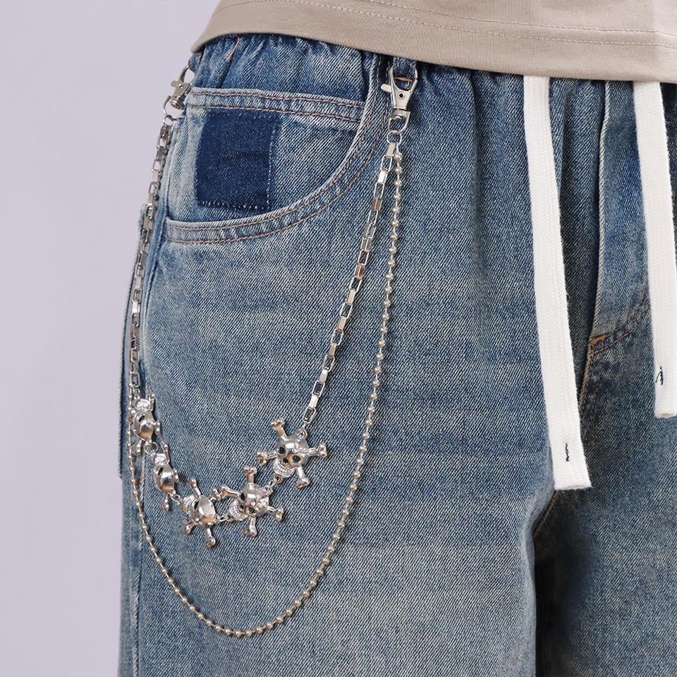 Double-layer skull beaded trouser chain