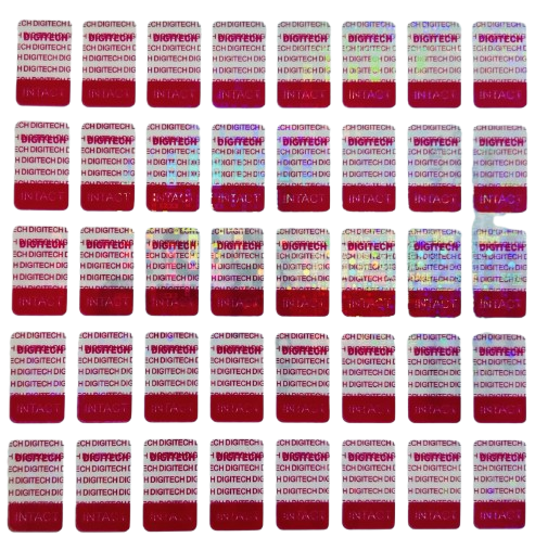 สติกเกอร์โฮโลแกรมสองชั้นแบบใสสำหรับป้องกันการปลอมแปลง พิมพ์ลายโฮโลแกรมแบบแตกเมื่อแกะออก สำหรับบรรจุภัณฑ์