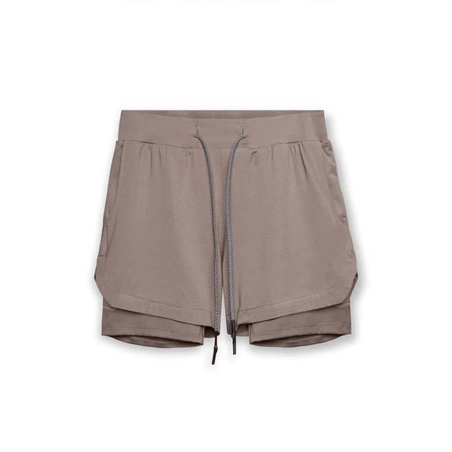 กางเกงขาสั้นผู้ชายแบบสองชั้นมีกระเป๋าผ้าฝ้ายโพลีเอสเตอร์สำหรับฤดูร้อน