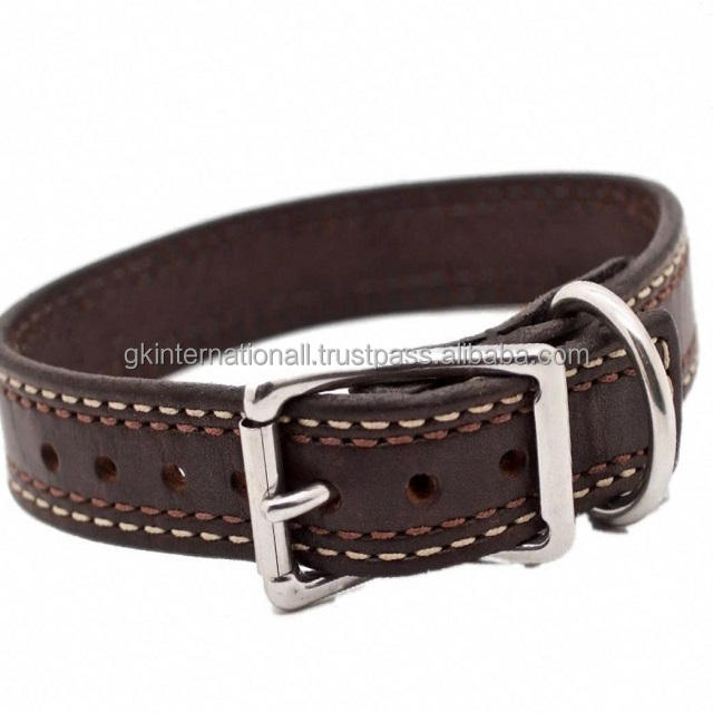 ปลอกคอสุนัขหนังอานหนาสองชั้นพร้อมเย็บขอบคู่ทําด้วยมือหนังสีน้ําตาลสุนัขปลอกคอสัตว์เลี้ยงสั่งซื้อจํานวนมาก
