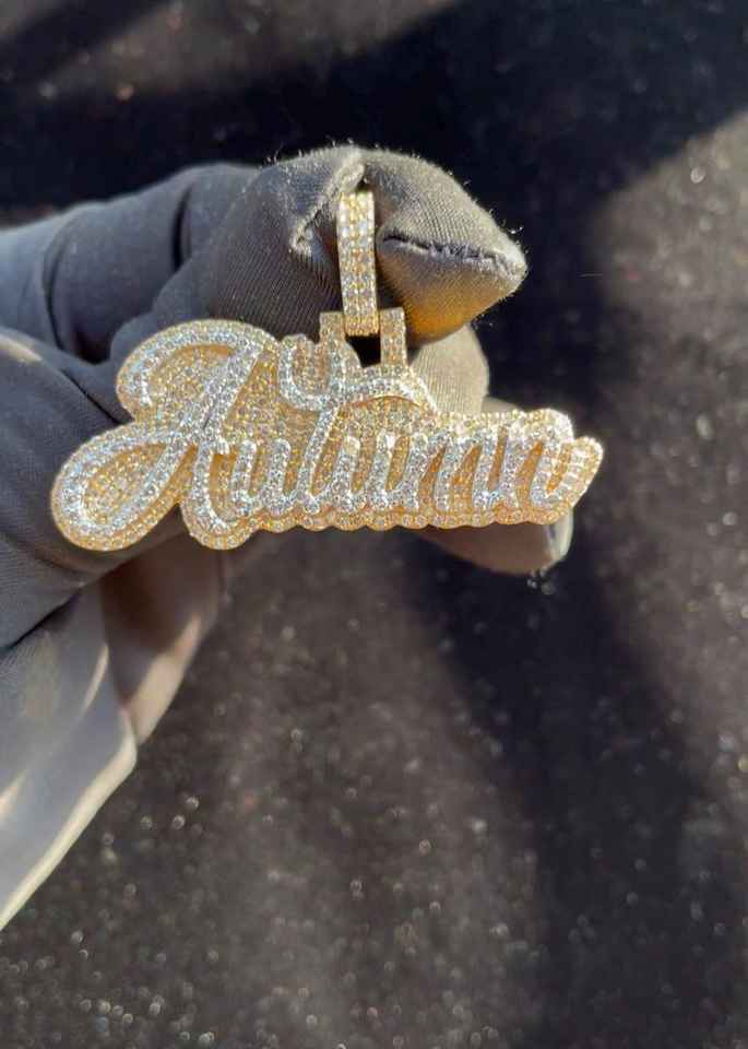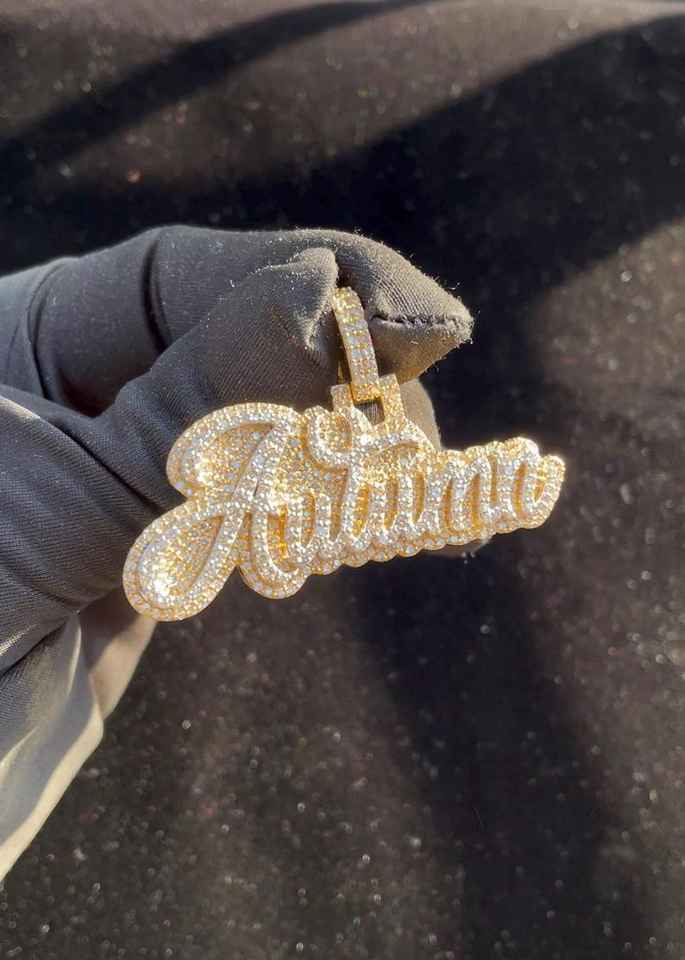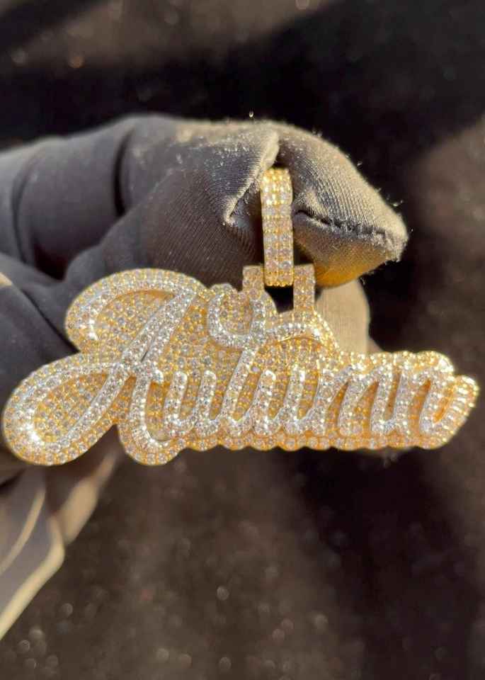 จี้เพชรโมอิสซาไนต์รูปตัวอักษรแบบสั่งทำพิเศษสำหรับผู้ชายสไตล์ฮิปฮอป ชุบทองคำขาว 18K บนเงินแท้ 925 สองชั้น ดีไซน์หรูหรา
