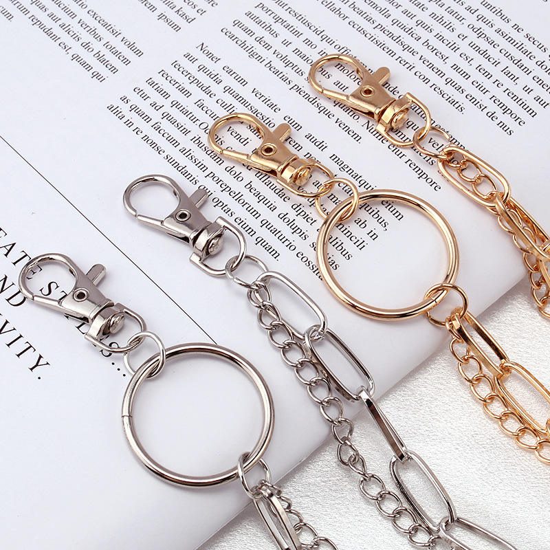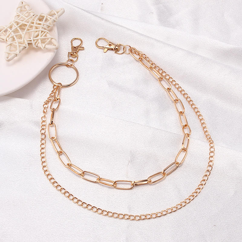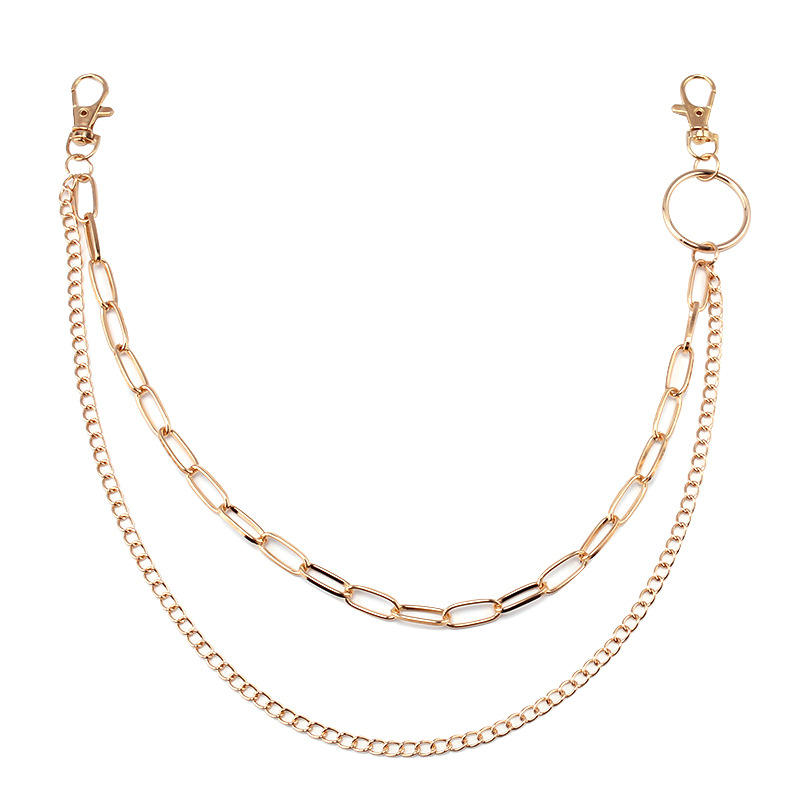โซ่คาดเอวโลหะสีทองสองชั้นสำหรับกางเกง สไตล์พังก์ ฮิปฮอป ร็อค ไนท์คลับ ดีไซน์วงแหวนเรขาคณิต โซ่คาดตัวทำจากโลหะผสมสังกะสี