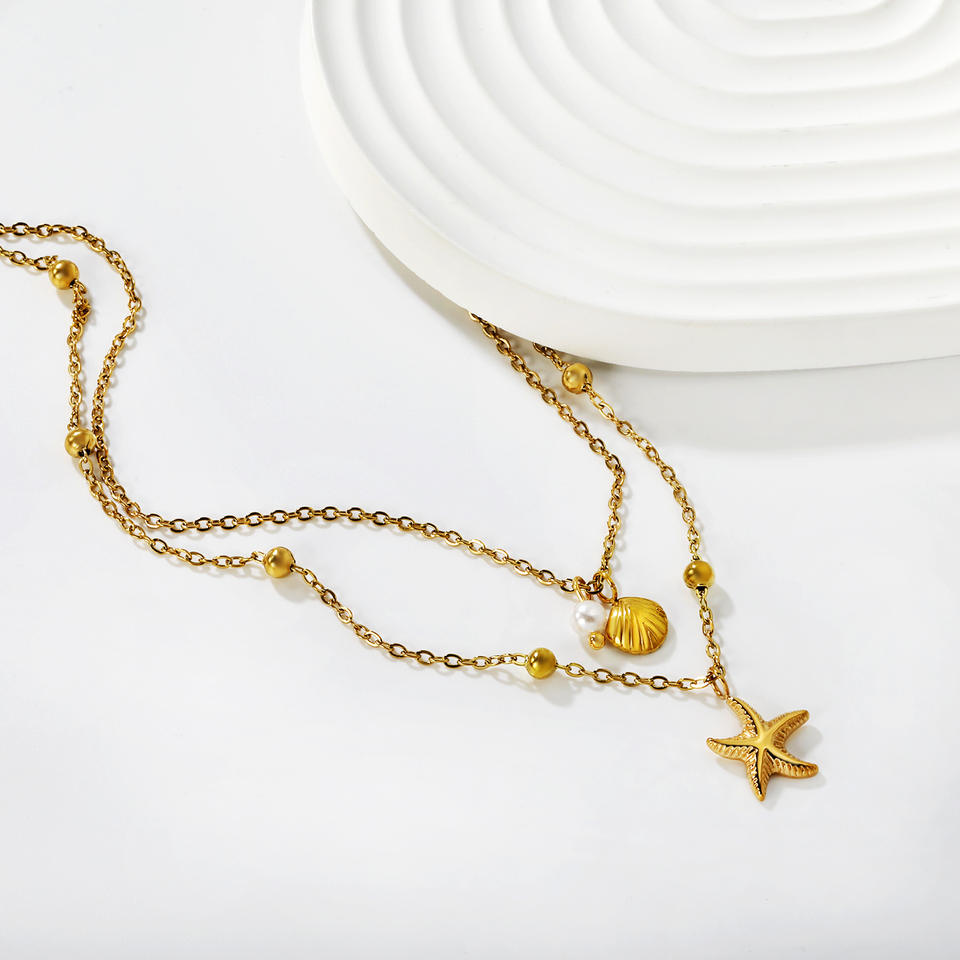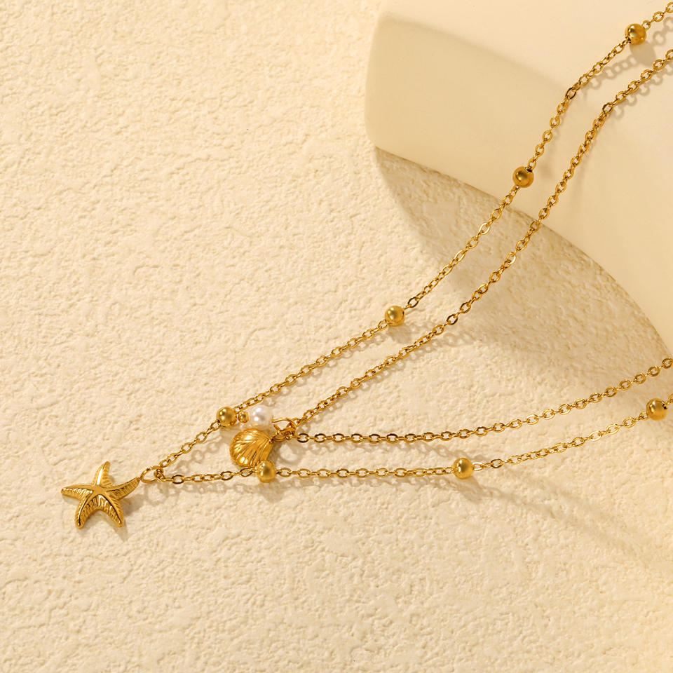 สร้อยคอจี้รูปปลาดาวเปลือกหอยสองชั้น โซ่โลหะผสมสังกะสี เครื่องประดับแฟชั่นสำหรับผู้หญิง