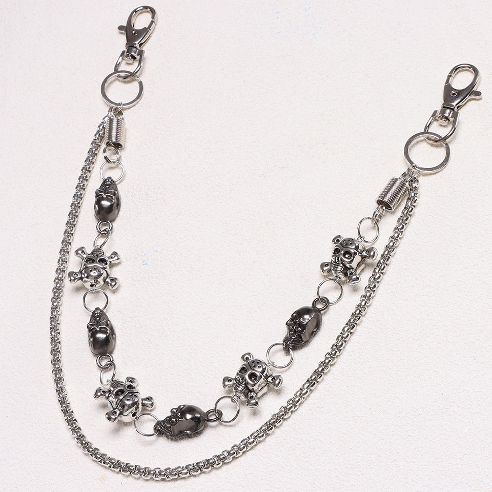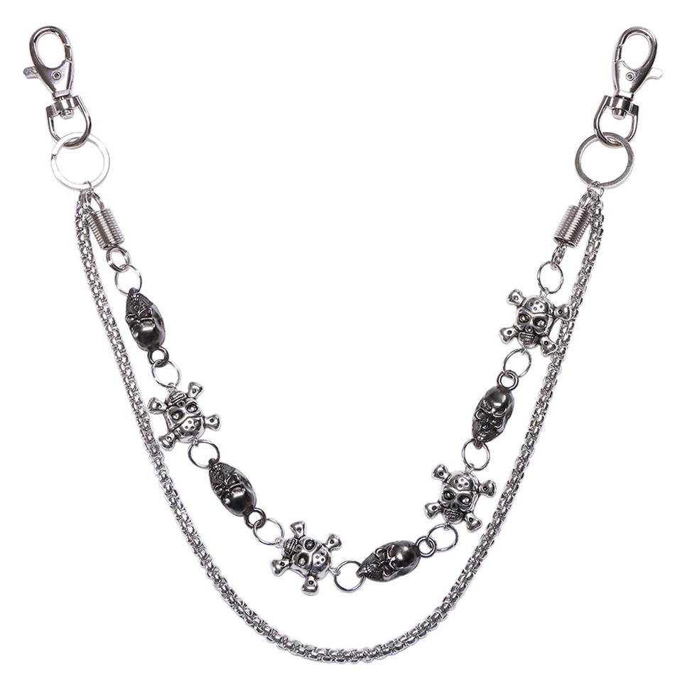 โซ่คาดเอวแบบสองชั้นลายกะโหลก โซ่โลหะผสมสังกะสี สไตล์ฮิปฮอป พังก์ สำหรับใส่ในชีวิตประจำวัน