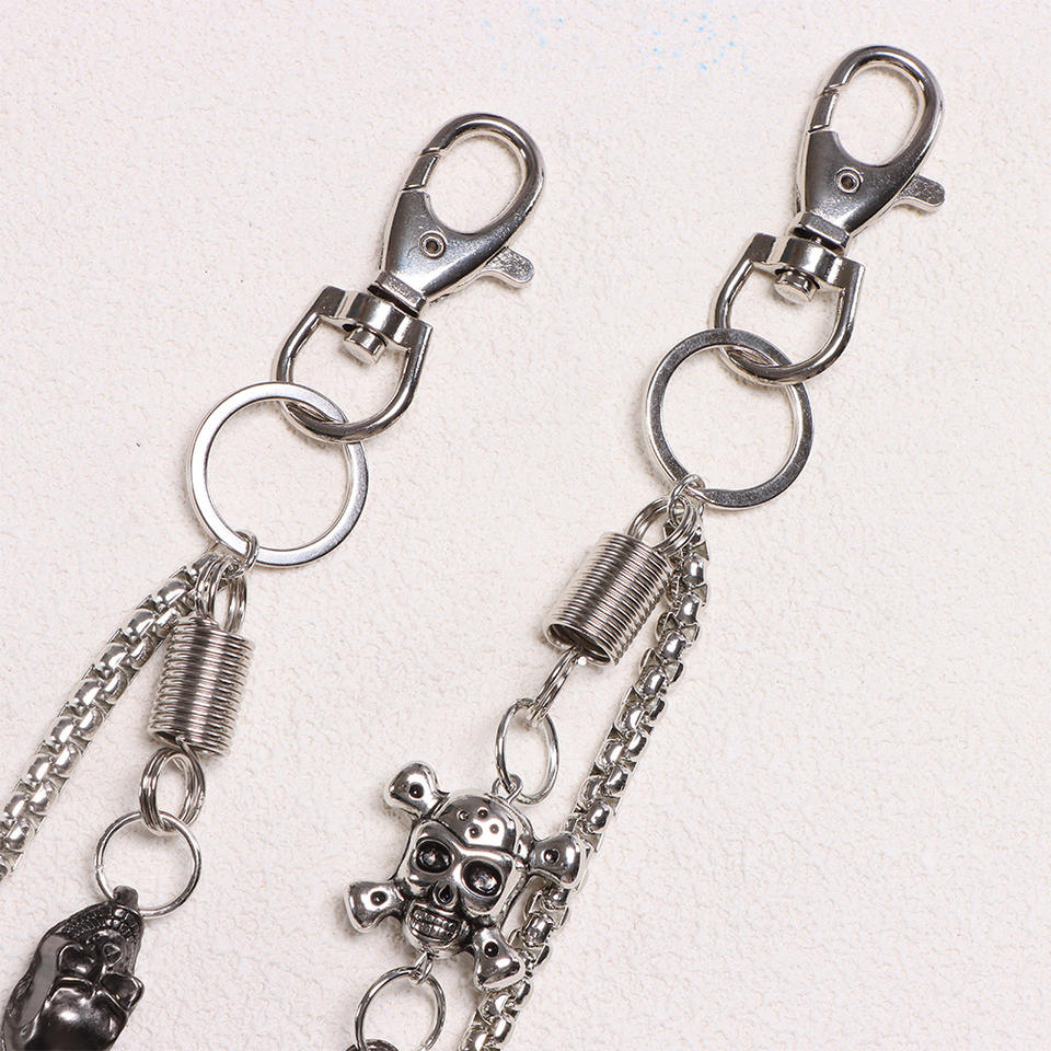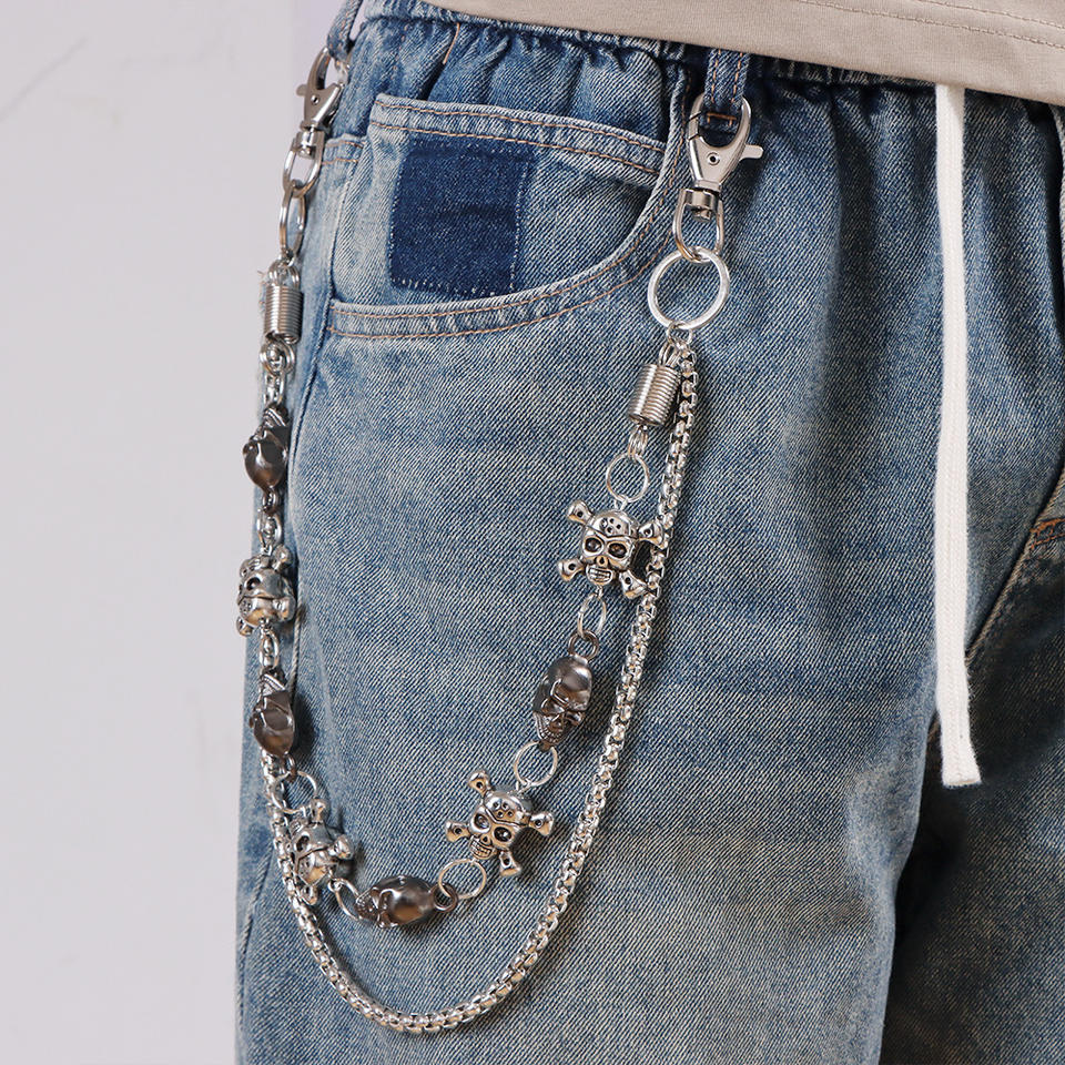 Double-layered skull patchwork trouser chain