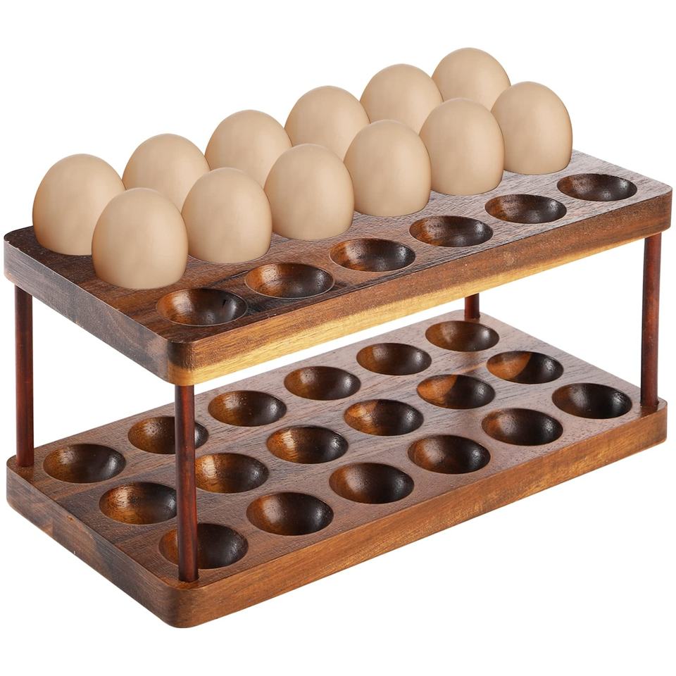 ที่วางไข่ไม้กระถินเทศสองชั้น สีธรรมชาติ สำหรับวางบนเคาน์เตอร์ครัว แข็งแรง ทนทาน จุไข่ได้ 36 ฟอง