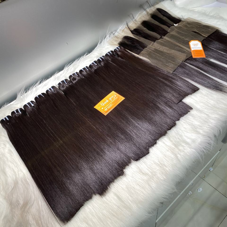 ผมตรงกระดูกสองชั้นแบบเส้นผมตรงจากเวียดนามสีดำธรรมชาติเนื้อผ้าเนื้อเรียบ