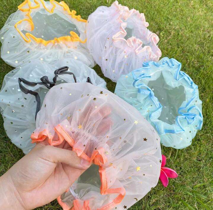 หมวกคลุมผมตาข่าย PE คู่สำหรับผู้ใหญ่ดีไซน์ท้องฟ้าเต็มไปด้วยดวงดาวที่คลุมผมพลาสติกกันน้ำได้จากโรงงานคนดังทำความสะอาด