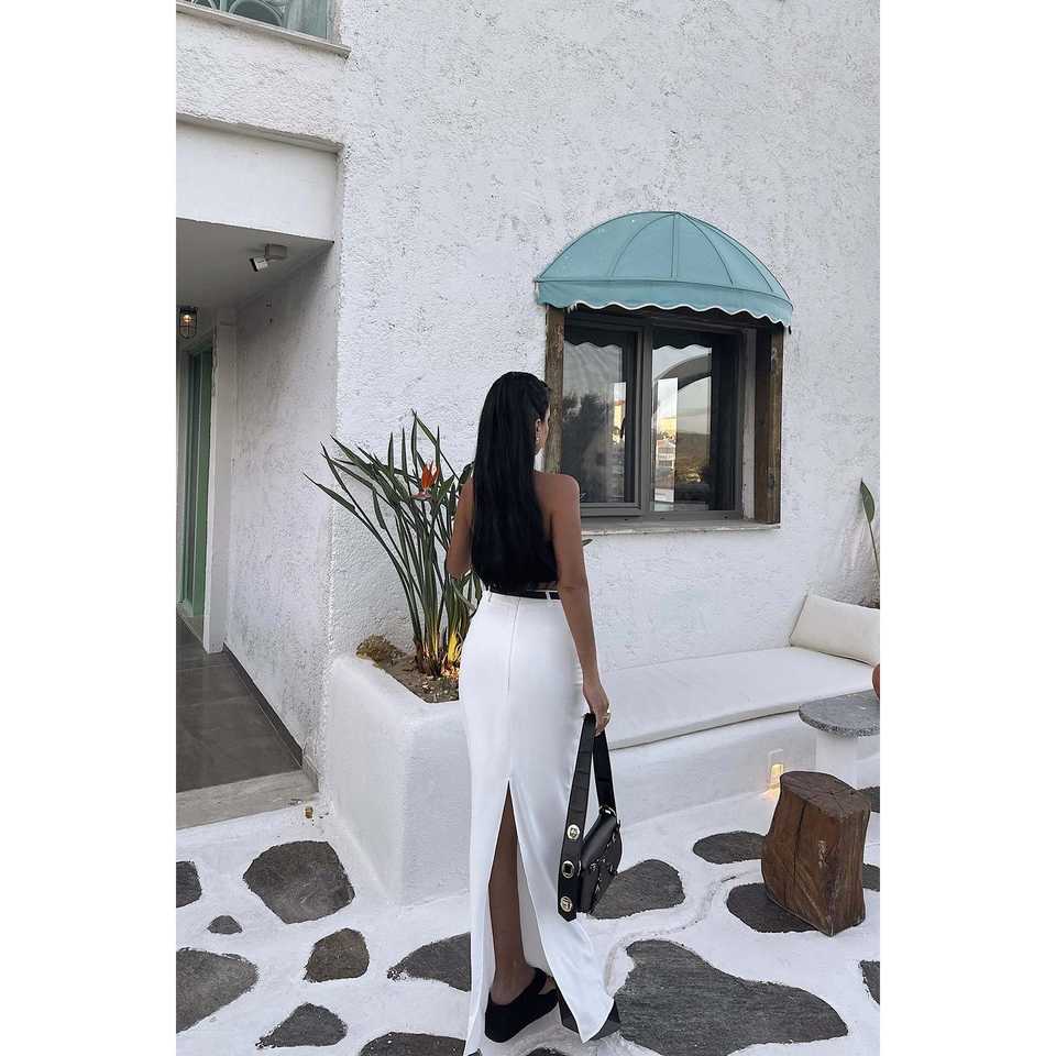 ชุดเซ็ตสองชิ้นลายทอแบบเรียบ ดับเบิ้ลเพอร์ลา เสื้อเบลเซอร์และกางเกงขาสั้น ไซส์ XS สำหรับชุดฤดูร้อนและฤดูใบไม้ร่วง