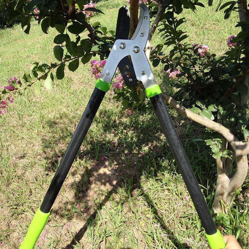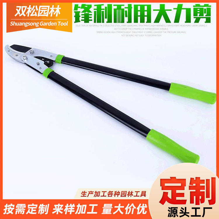 กรรไกรตัดแต่งกิ่งไม้แบบหนักพิเศษ ดับเบิ้ลไพน์ ใบมีดเหล็กคาร์บอน 100 มม. เส้นผ่านศูนย์กลางตัดแต่ง 20-30 มม. โครงสร้างรูปตัววีแบบผีเสื้อ